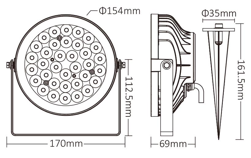 De tuinspot is voorzien van 35 krachtige Philips LED’s en een speciale lens die zorgt voor een strakke en gerichte lichtbundel van 15°.