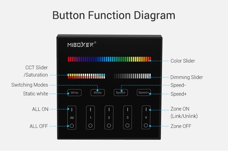 Let op: Vanwege een software/beveiligingsupdate van de fabrikant, zijn deze dimmers enkel compatibel met nieuwe MiLight ledcontrollers en lampen, geleverd in 2017.